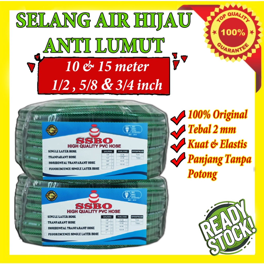 - Produk ini tidak sedang Flash Sale, tidak semua Seller suka Flash Sale, saya rasa ini bukan kekurangan, Jika Anda anggap Harga Rp. 33.000,00 itu murah untuk SELANG AIR 10 & 15 METER 1/2 5/8 3/4 INCH BENANG HIJAU SELANG AIR TAMAN ANTI LUMUT TEBAL 2 MM ALAT KEBUN MURAH COD ya ambil saja